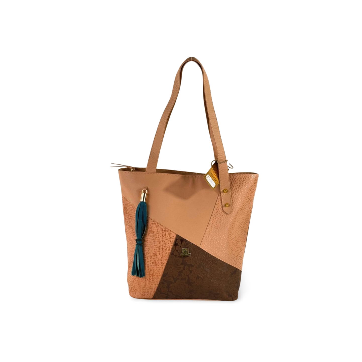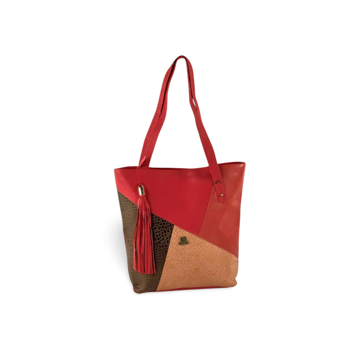 Este bolso tipo tote es el equilibrio perfecto entre estilo y funcionalidad. Su diseño geométrico en combinación de colores, junto con texturas mixtas, lo convierten en una pieza única y moderna. Incluye una borla decorativa que aporta movimiento y personalidad, ideal para looks casuales y urbanos.